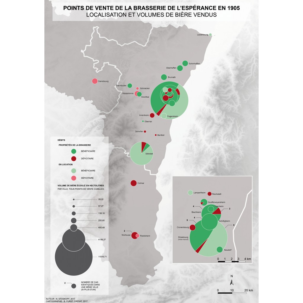 | Diese Karte zitieren | Nicolas Stoskopf, « Les débits de la Brasserie de l’Espérance en 1905 », in Atlas historique d'Alsace, www.atlas.historique.alsace.uha.fr, Université de Haute Alsace, 2017 |